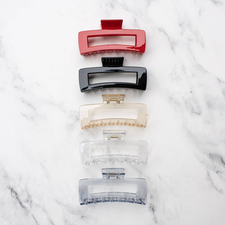 Size: Approx. 5inch X 2.2inch 100% Acrylic Jumbo Size 5 Inch Solid Long Square Hair Clip This Solid Jumbo size 5 hair clip is one of the fastest selling products, and if you have lots of hair this hair clip would do you the trick of holding your hair up for you. This product is really soft and really comfortable to wear when having long hair.