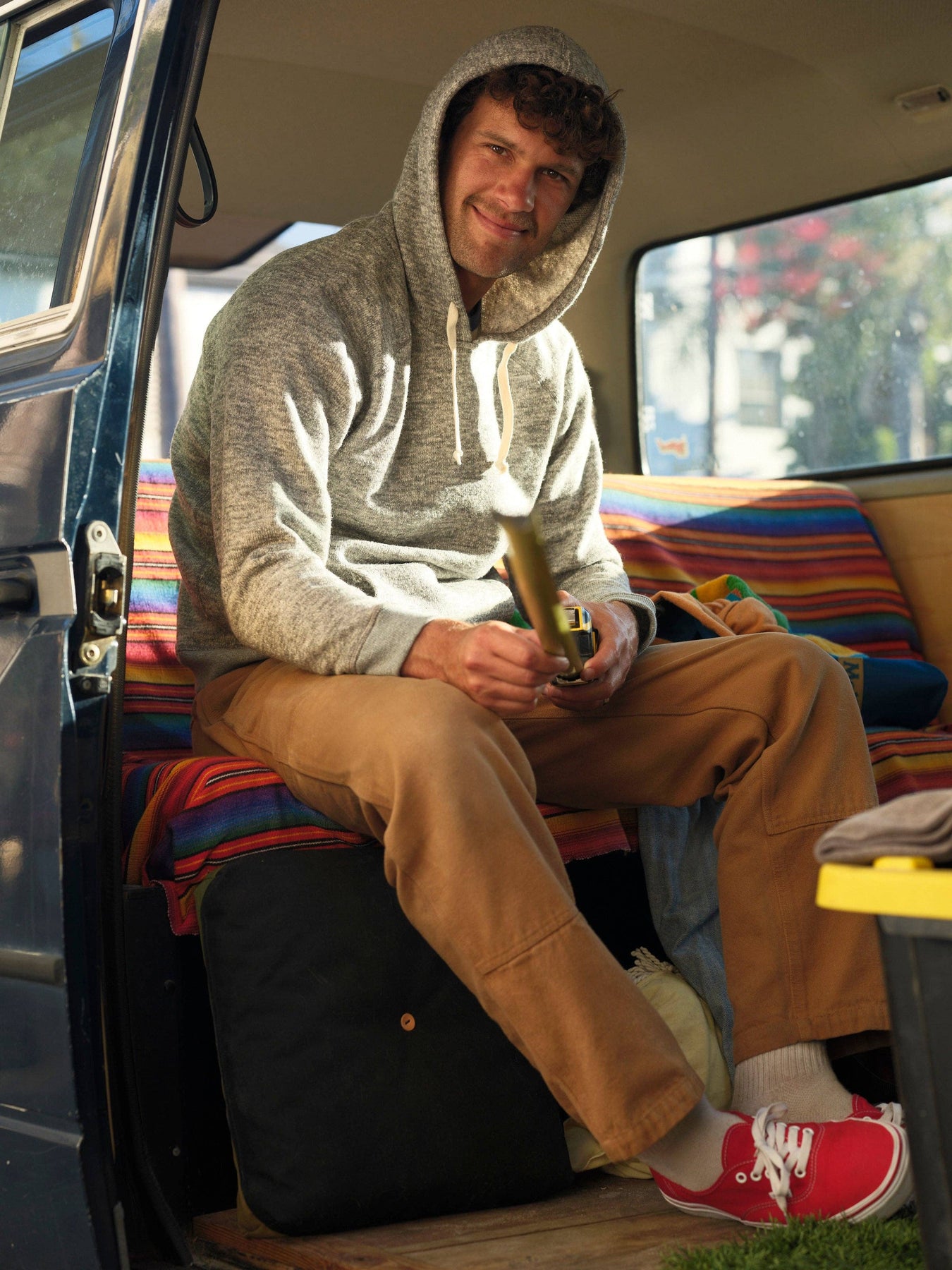 A hooded sweatshirt that feels like a sweater. The premium fabric is softly textured and yarn-dyed for subtle color variation. * 43% Cotton, 36% Polyester, 20% Acrylic, 1% Spandex