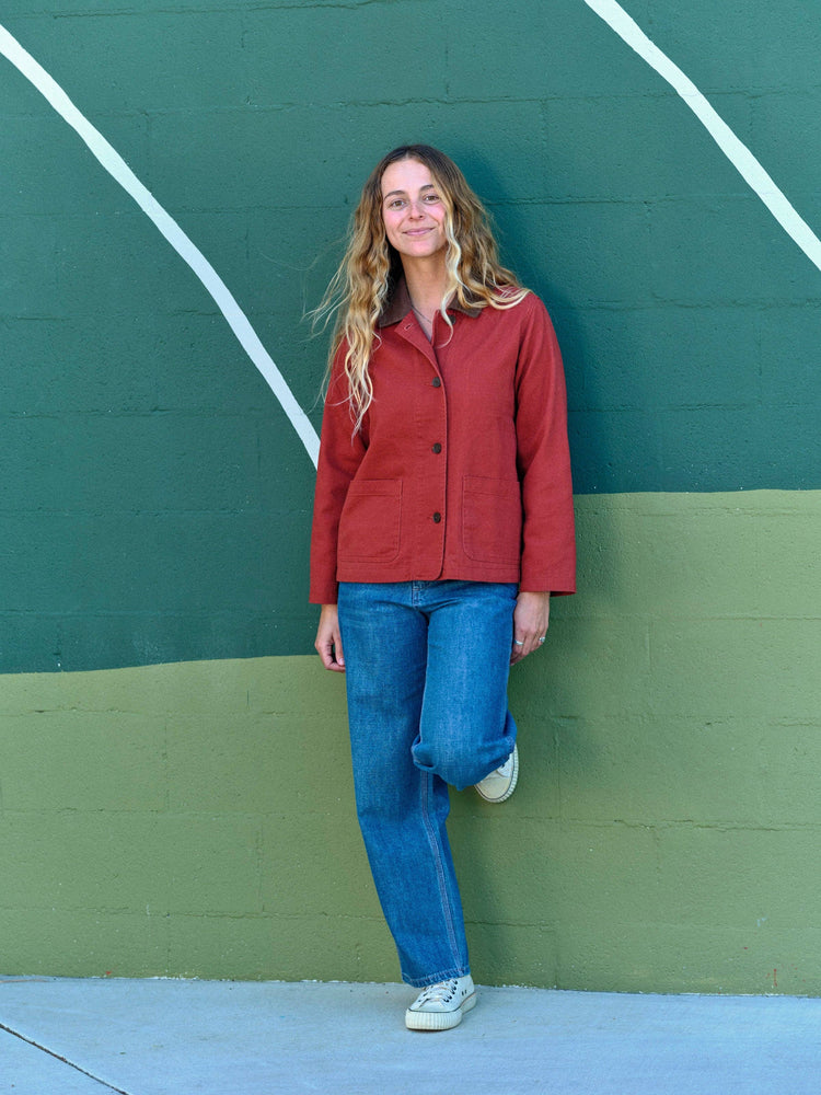 Lined with soft flannel, the Painter Jacket is a cute and functional update to a classic chore coat. It features patch pockets for storage, hiden hand pockets for comfort, and a collar that can be buttoned up or folded down like a lapel.